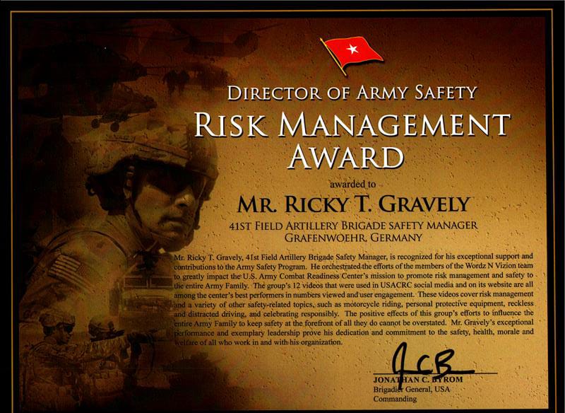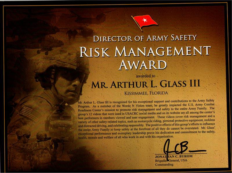 Wordz N Vizion WAV Artists received recognition for increasing site visibility to the Combat Readiness Center by Providing 12 hip-hop style safety videos. This was the 1st time ever the US Army Combat Readiness Center has used this type of creativity to reach Soldiers ranging from 18 to 34. There creative efforts has also affected the numbers by lowering fatalities 2 years in a row for FY24 and FY25. These Artist also received Coins for the Safety Center and the Sergeant Major of the Army. Each video was branded with the Safety Center’s and US Army’s motto.
